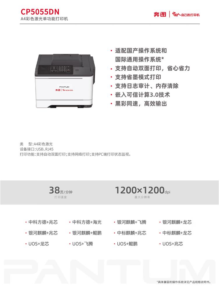 奔图(PANTUM)CP5055DN A4彩色激光单功能打印机
