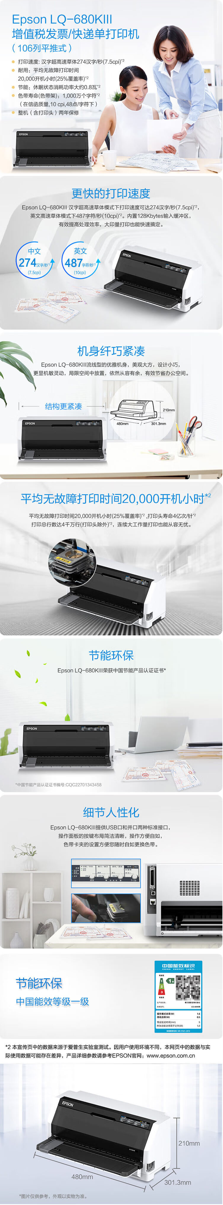 爱普生(EPSON)LQ-680KIII 针式打印机 106列平推式