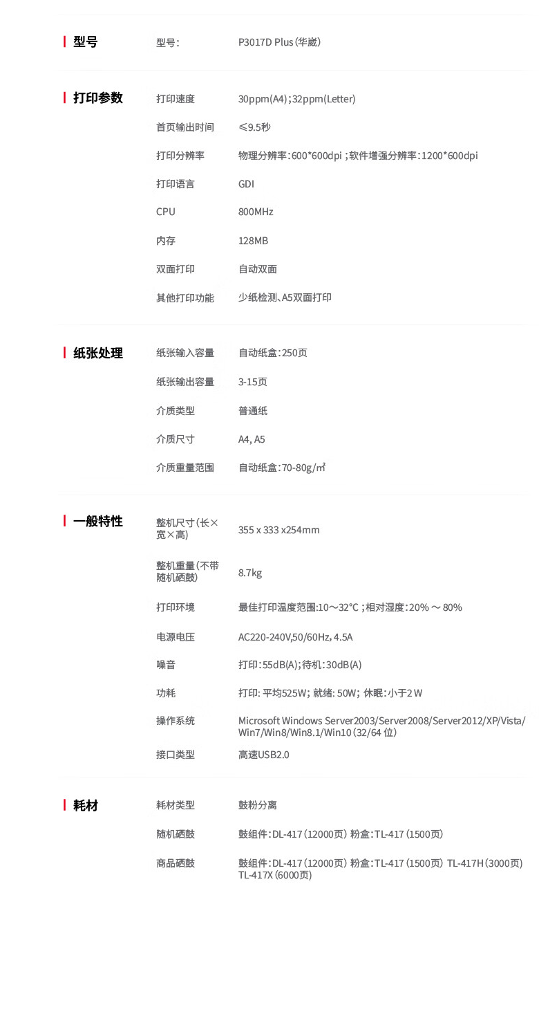 奔图(PANTUM)P3017D Plus黑白激光打印机