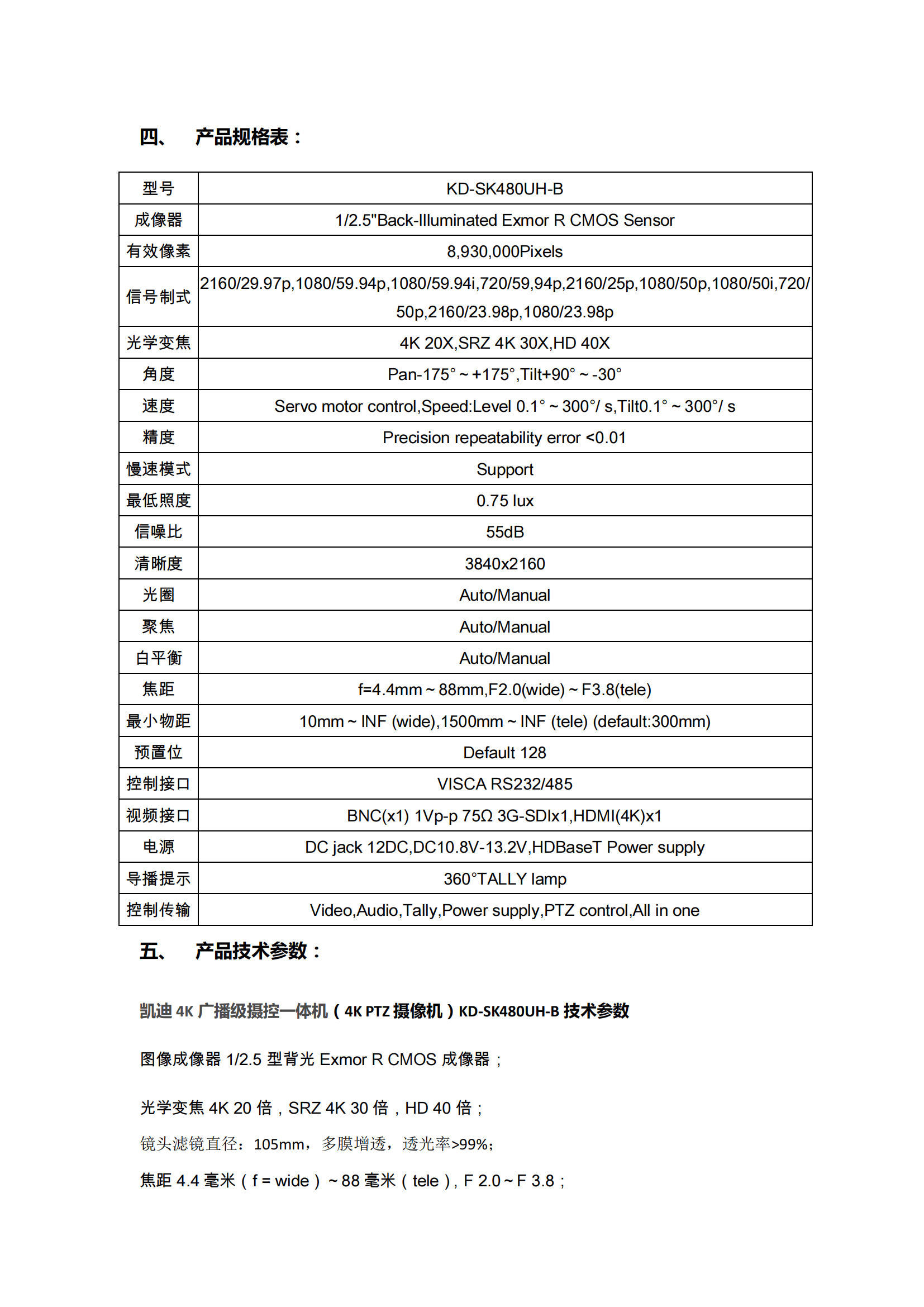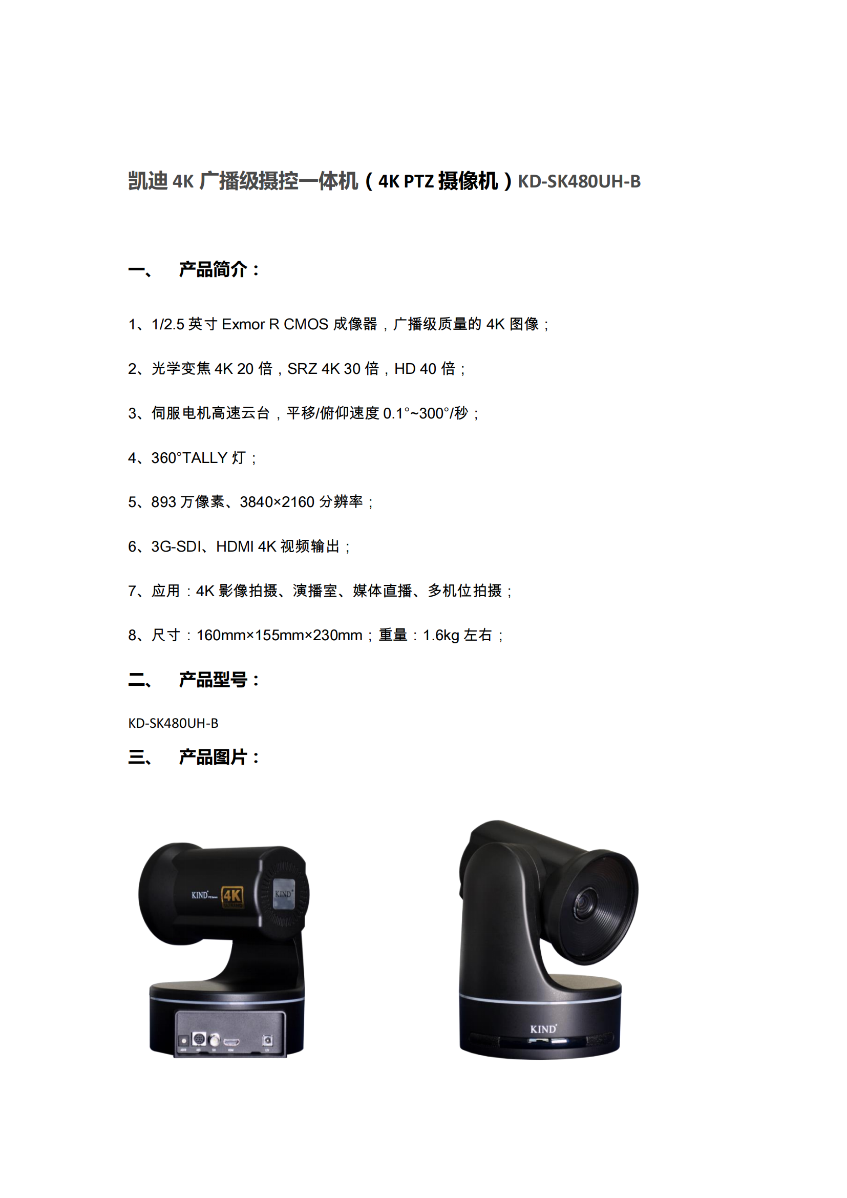 凯迪 KD-SK480UH-B 广播级4K摄控一体摄像机 单位:台