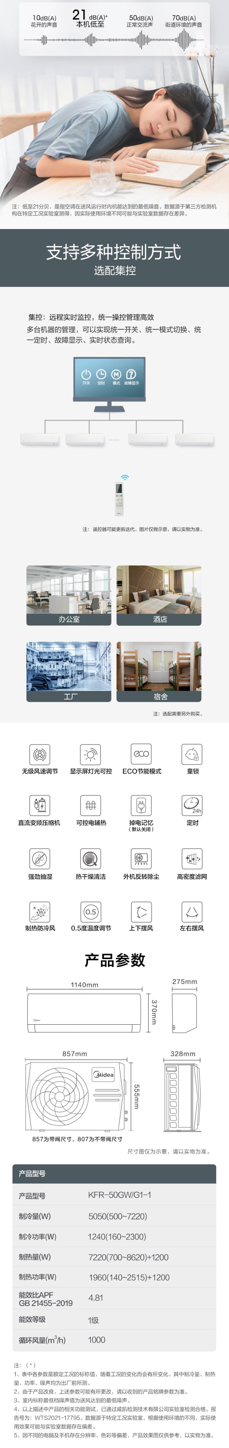 美的 KFR-50GW/G1-1 2匹变频冷暖空调挂机
