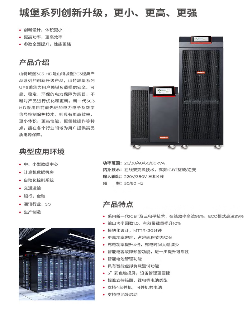 山特3C3 HD-40K不间断电源(配山特32节12V100Ah 免维护铅酸电池+电池柜,三年质保期)