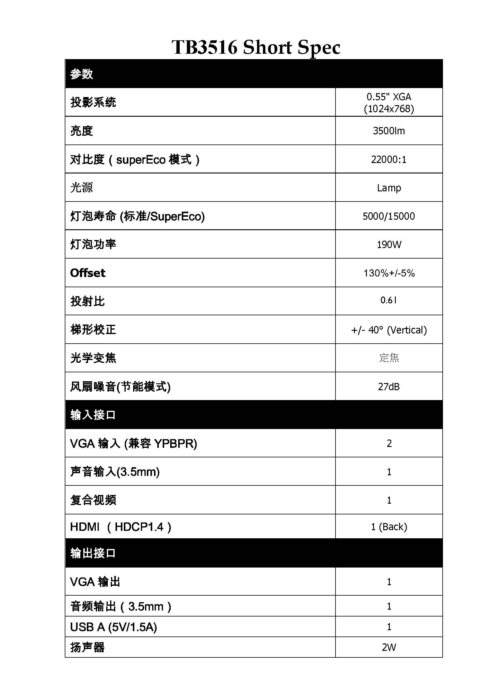 优派 TB3516 投影仪