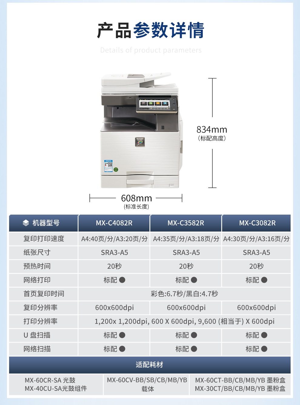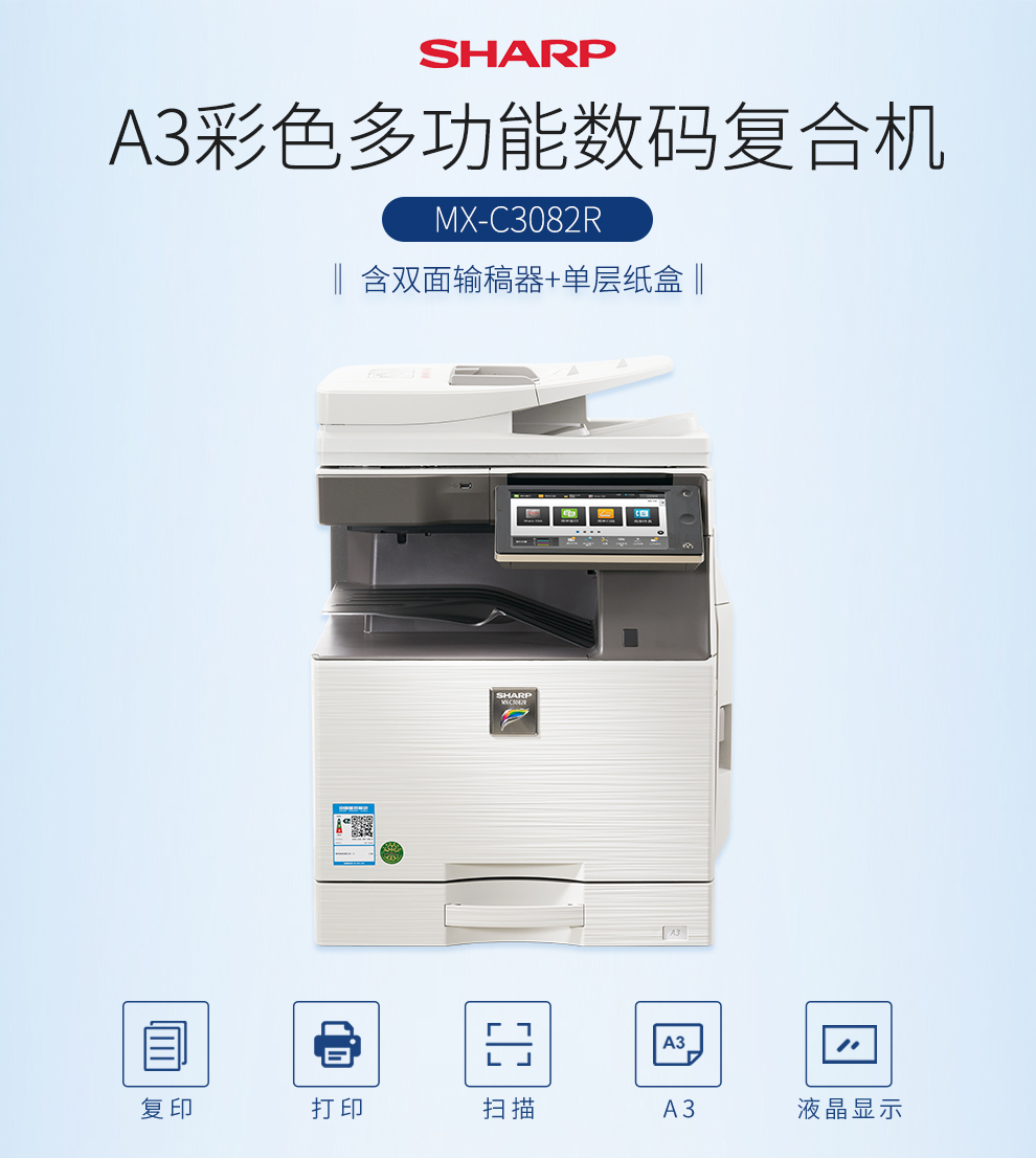 夏普(SHARP) MX-C3082R 彩色复印机 (主机+双面送稿器+双纸盒带落地原装工作台)