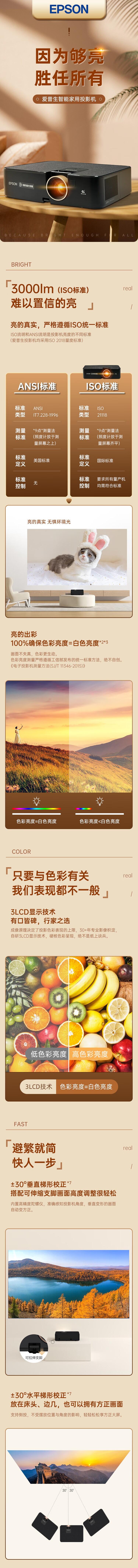 爱普生CH-A100 高亮智能投影仪(3000流明 1.35倍数码变焦)