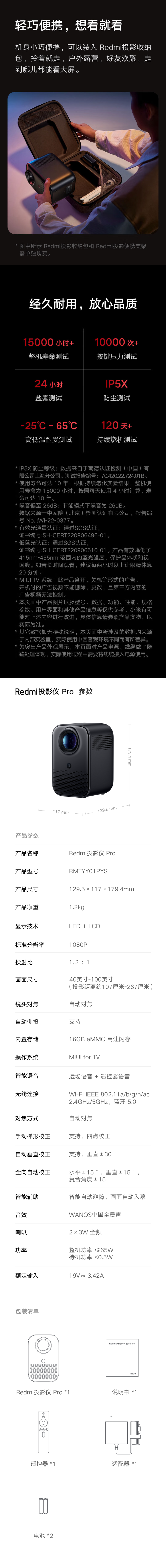 小米 Redmi 投影仪 Pro 家用投影机 智能家庭影院