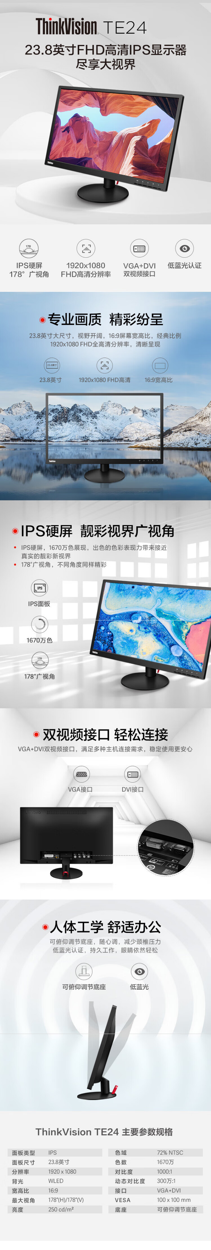 联想(ThinkVision)TE24-20 23.8英寸电脑显示器