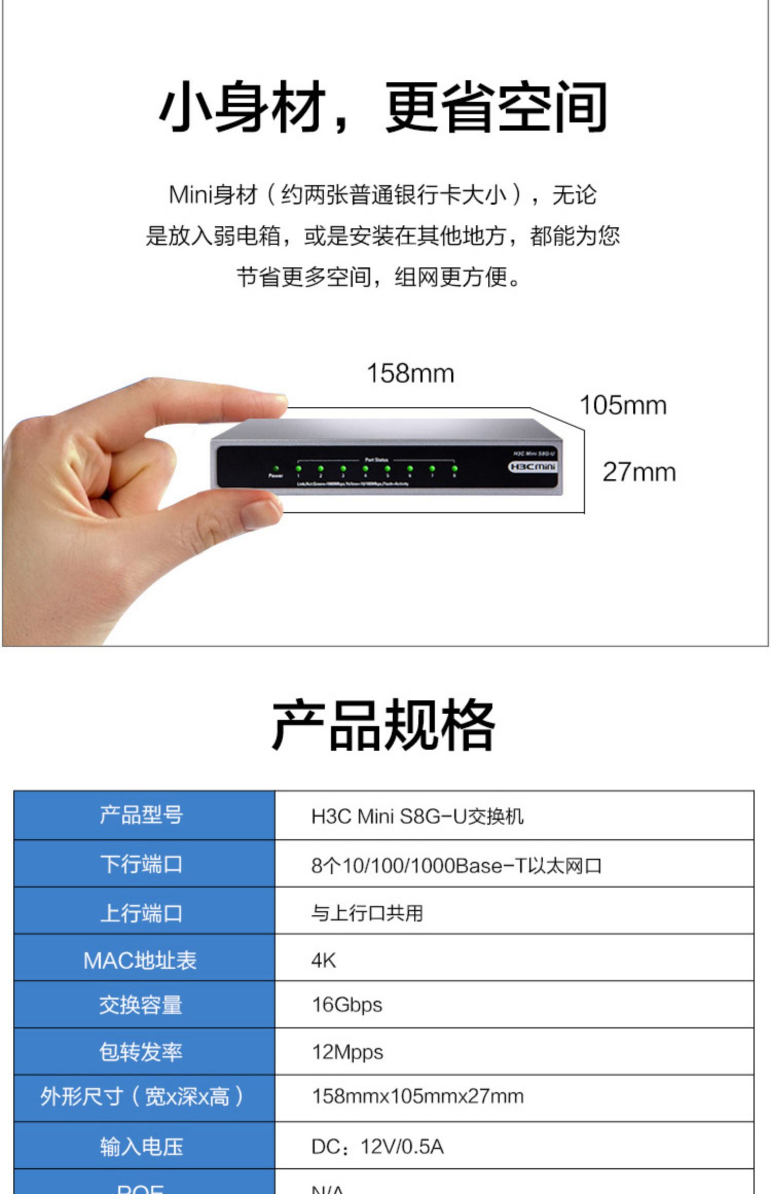 华三(H3C)Mini S8G-U 8口千兆交换机 企业级交换器