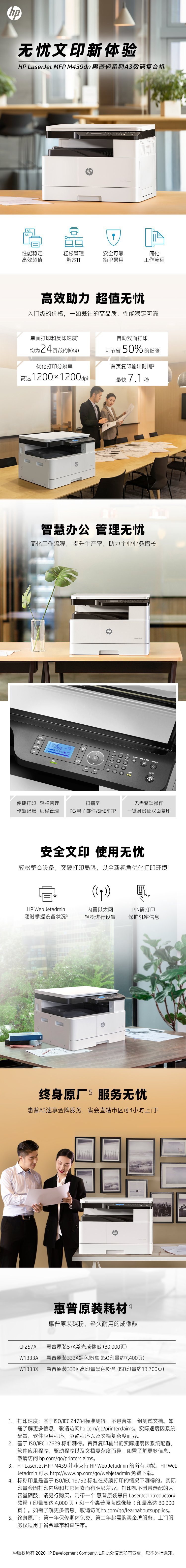 惠普 Laser NS MFP LaserJet M439dn A3黑白激光多功能一体机(打印/复印/扫描)