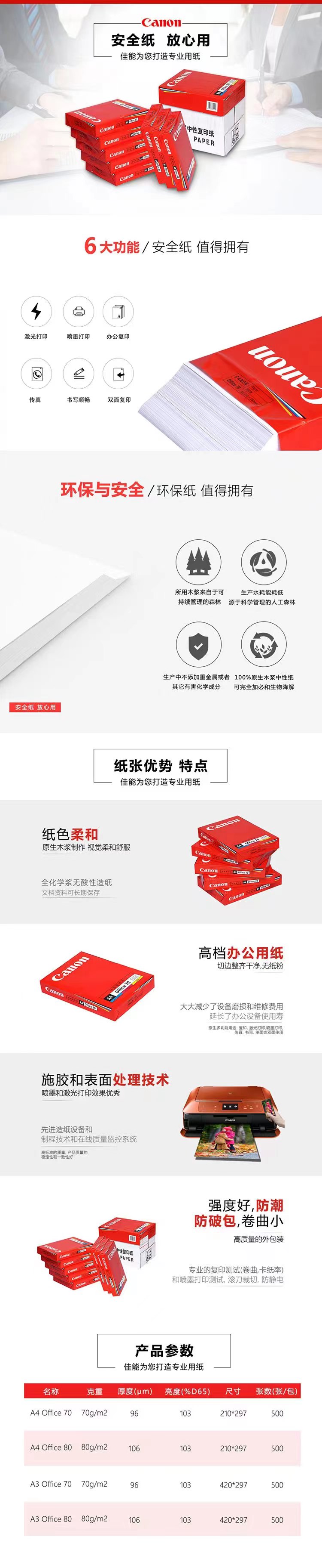 佳能 A3 70G 白色 500 张/包 复印纸 5包/箱(单位:箱)