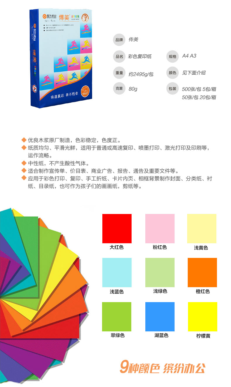 传美色纸 80G A4 500张/包 5包/箱(绿)