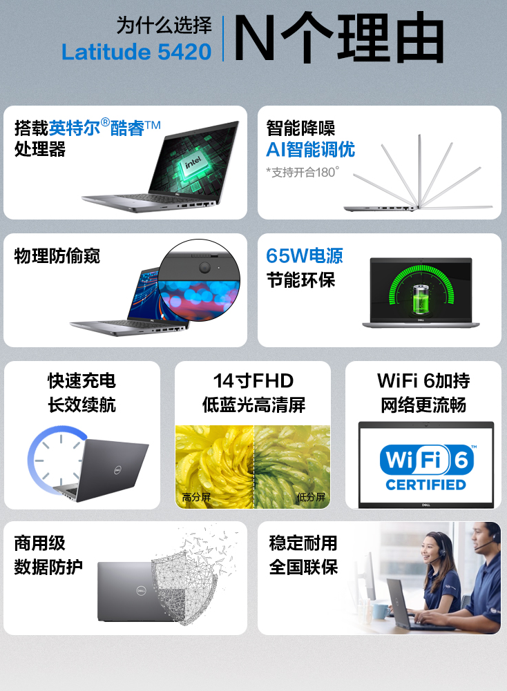 戴尔(DELL)Latitude 5420 14英寸笔记本电脑(i7-1165G7/16G/512G/Win11H/三年质保)