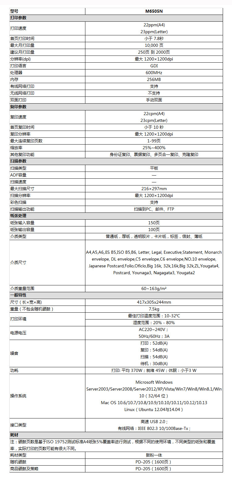 奔图(PANTUM) M6505N黑白激光多功能一体机(复印/打印/扫描/USB打印/网络打印)