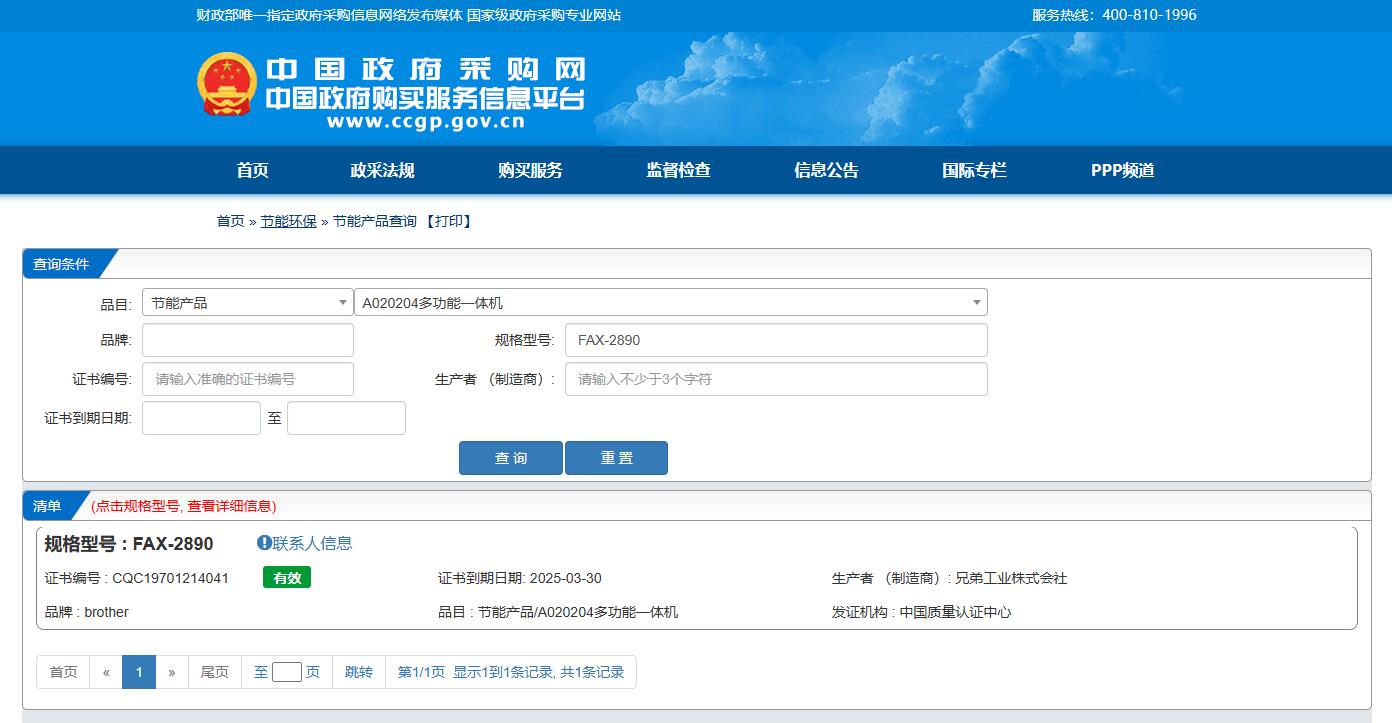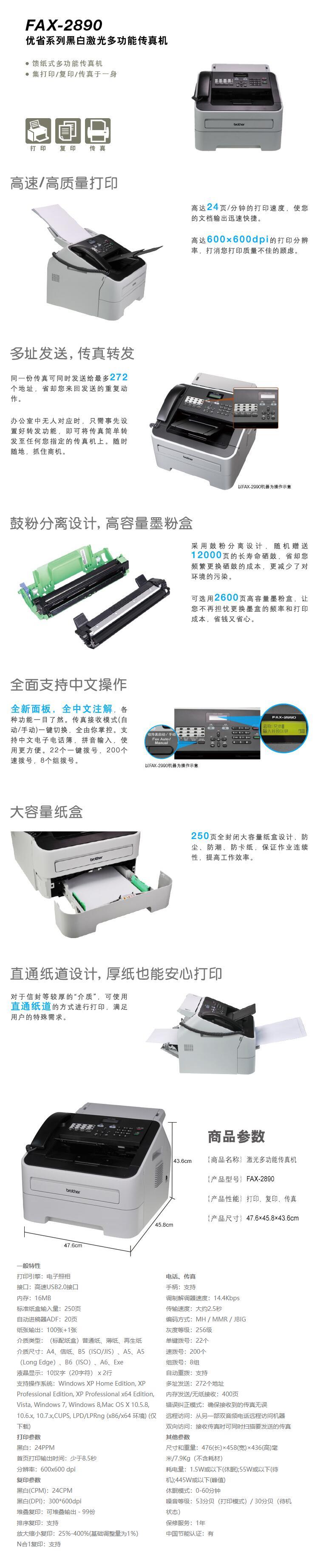 兄弟(brother)FAX-2890 黑白激光一体机(打印、复印、传真)