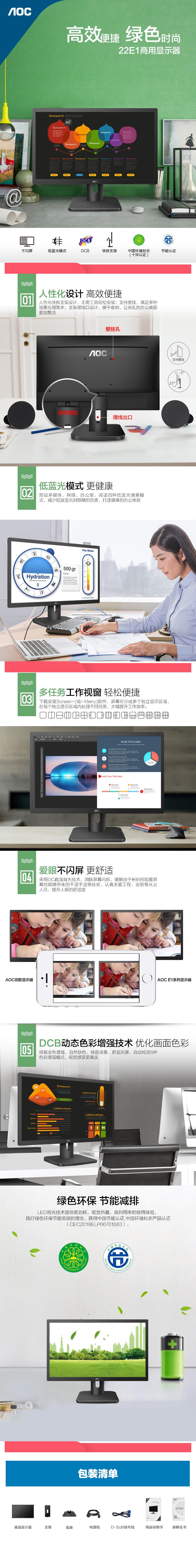 AOC 22E1 21.5英寸电脑显示器 VGA接口
