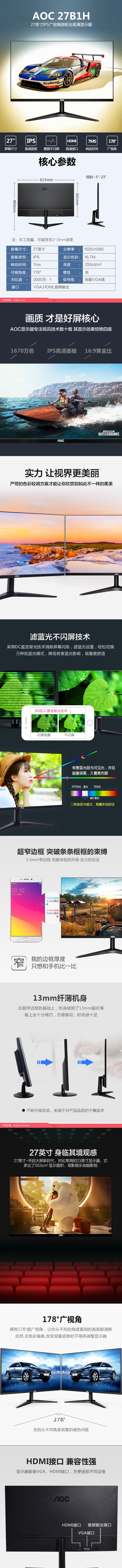 AOC 27B1H 27英寸电脑显示器(HDMI+VGA)