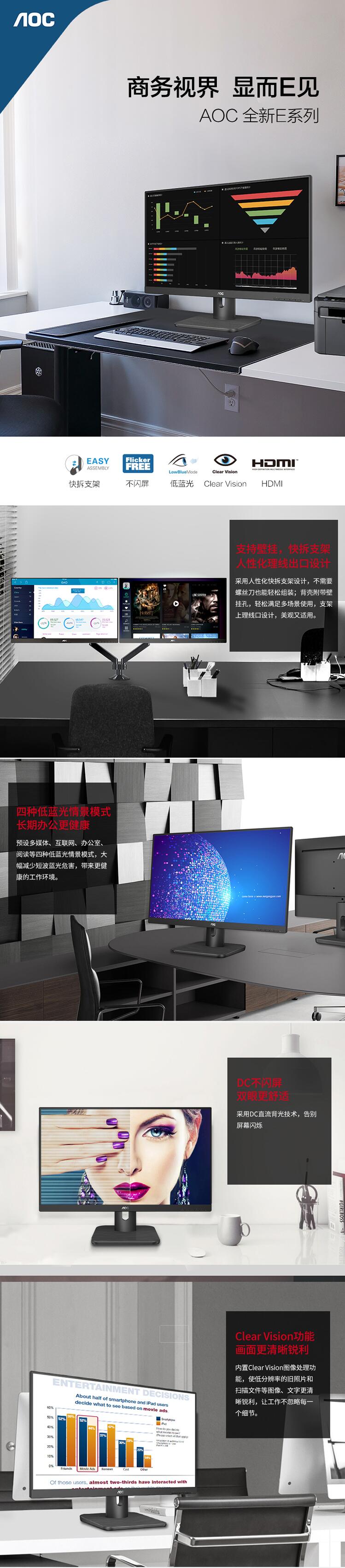 AOC 24E1H 电脑显示器 24英寸全高清IPS屏(HDMI+VGA)