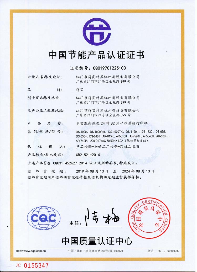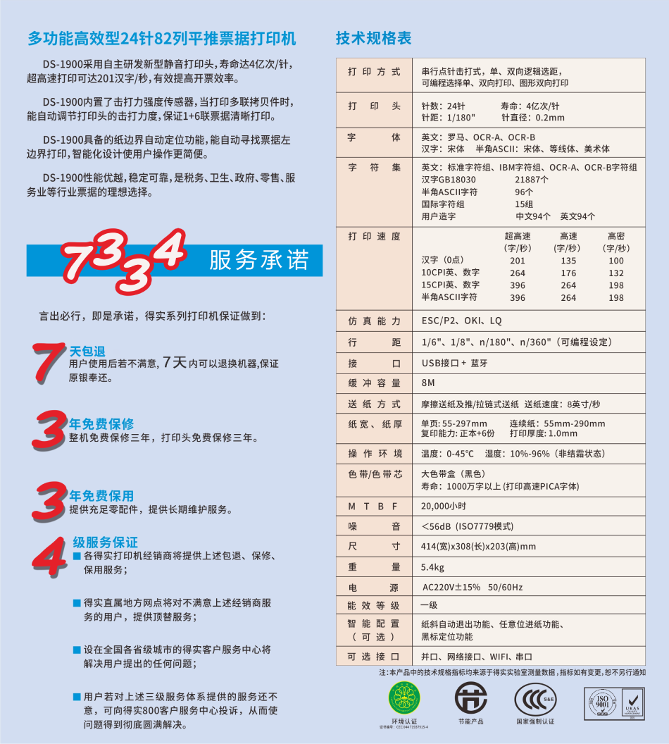 得实(Dascom)DS-1900 24针82列平推针式打印机
