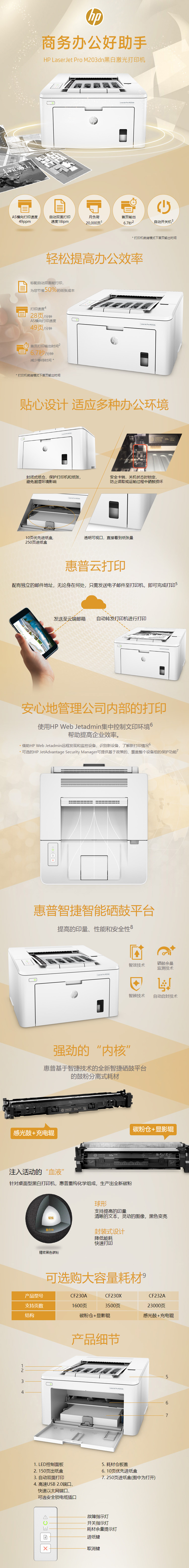惠普(HP)LaserJet Pro M203dn激光打印机