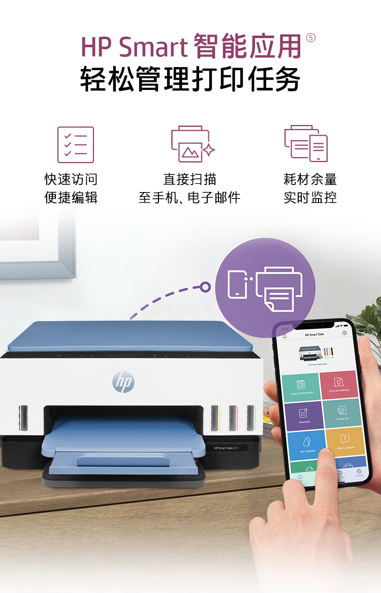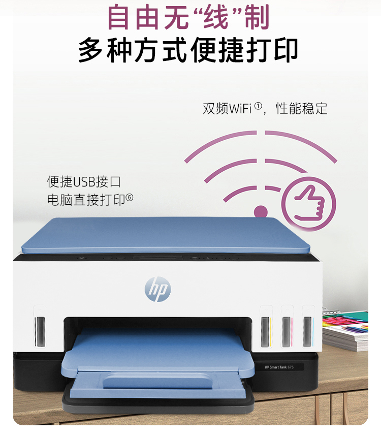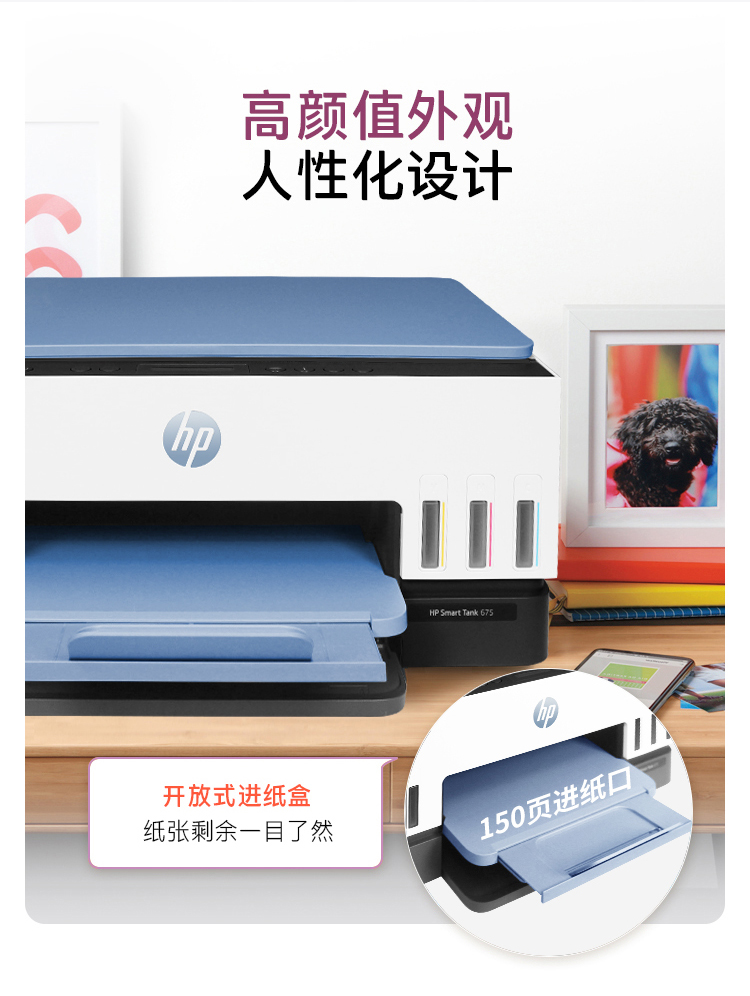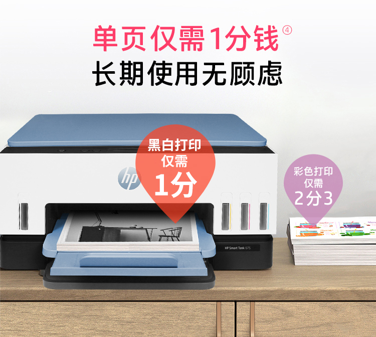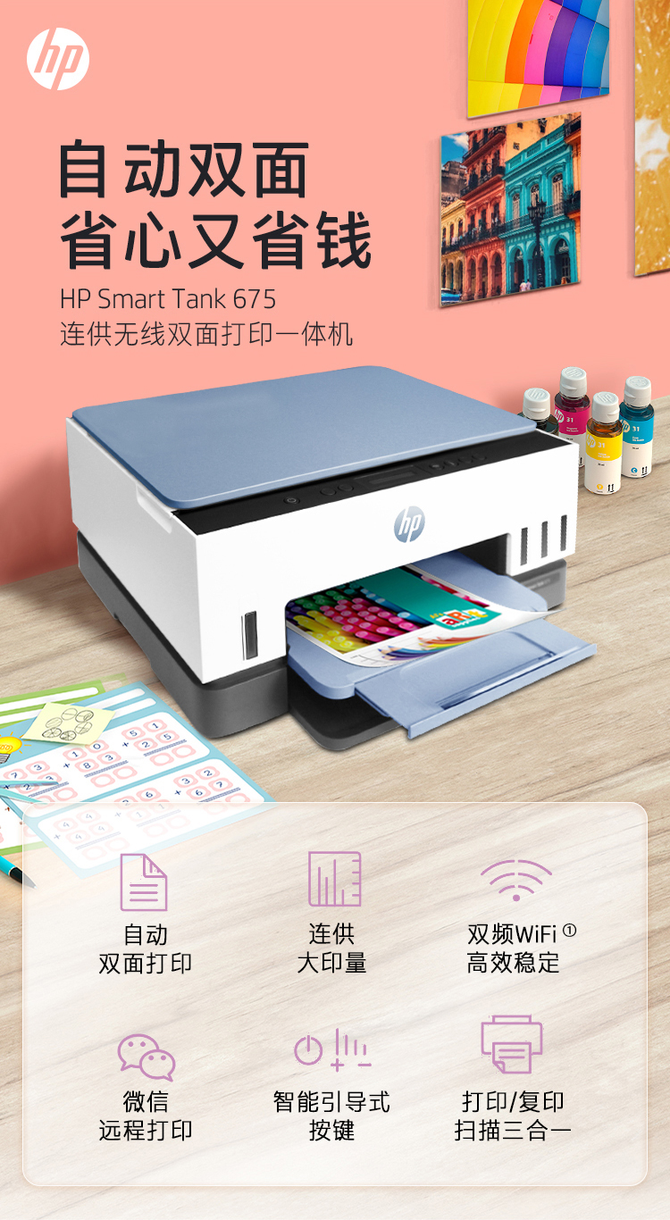 惠普(HP)Smart Tank 675 彩色喷墨连供无线打印一体机 自动双面打印/一年保修