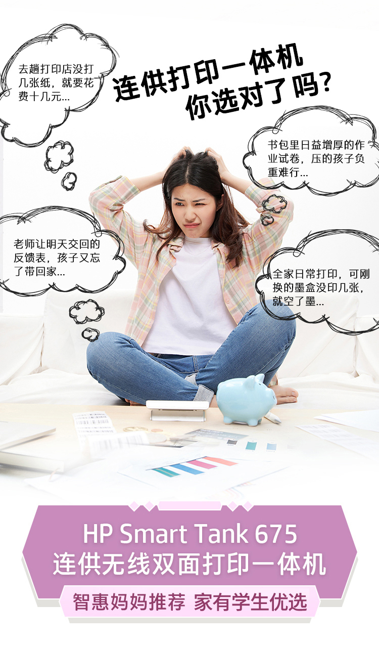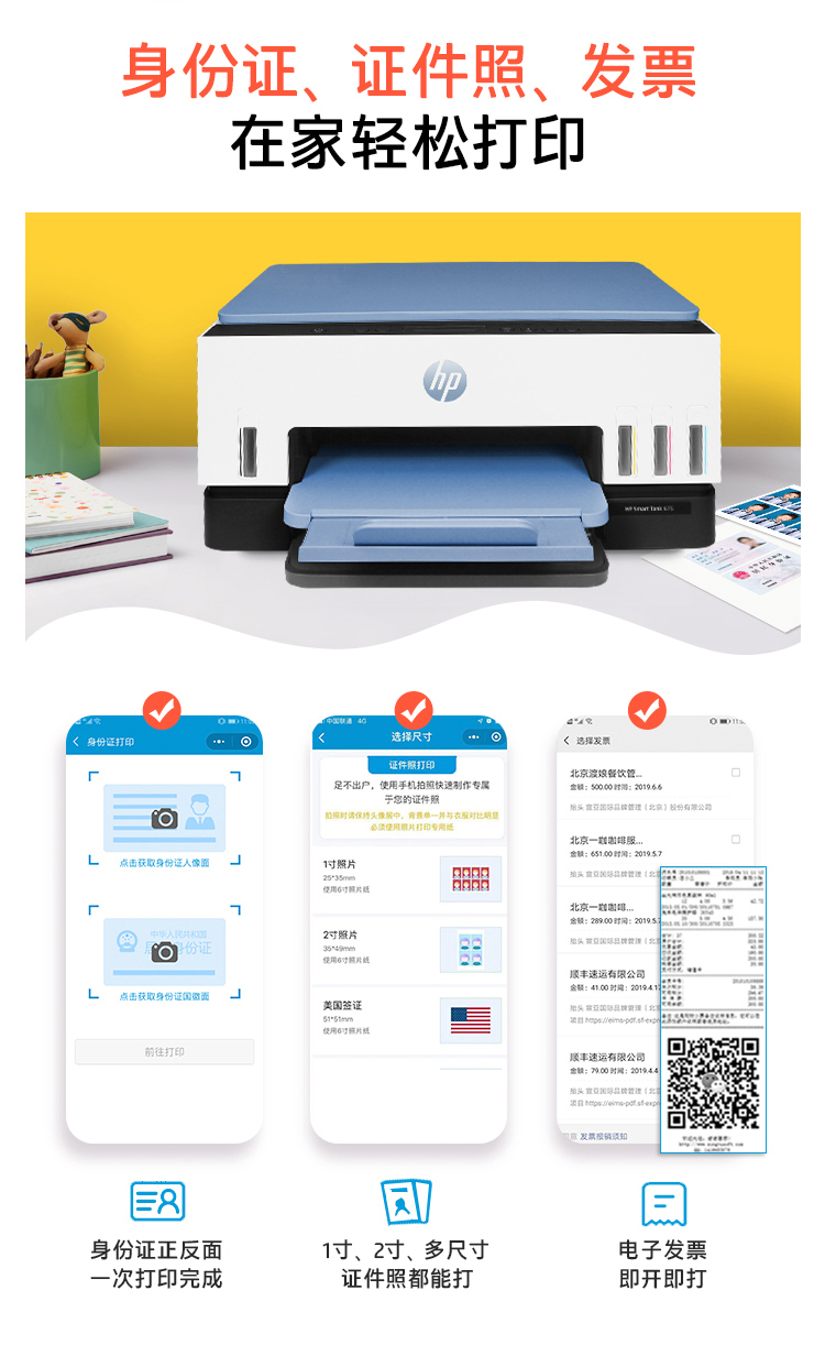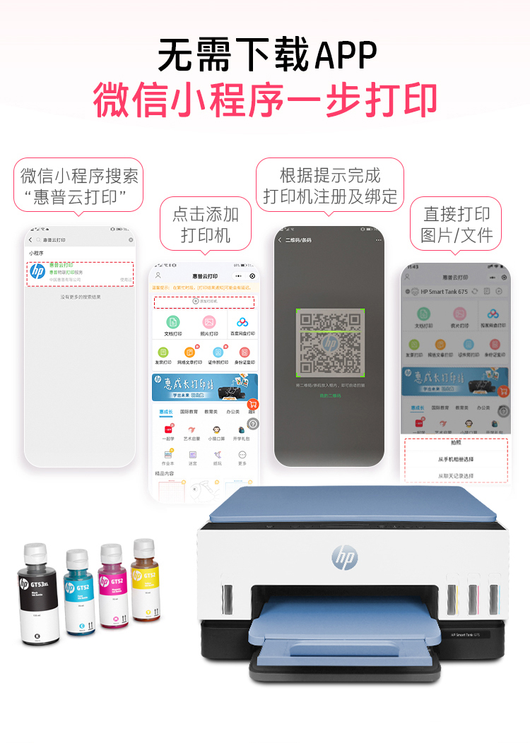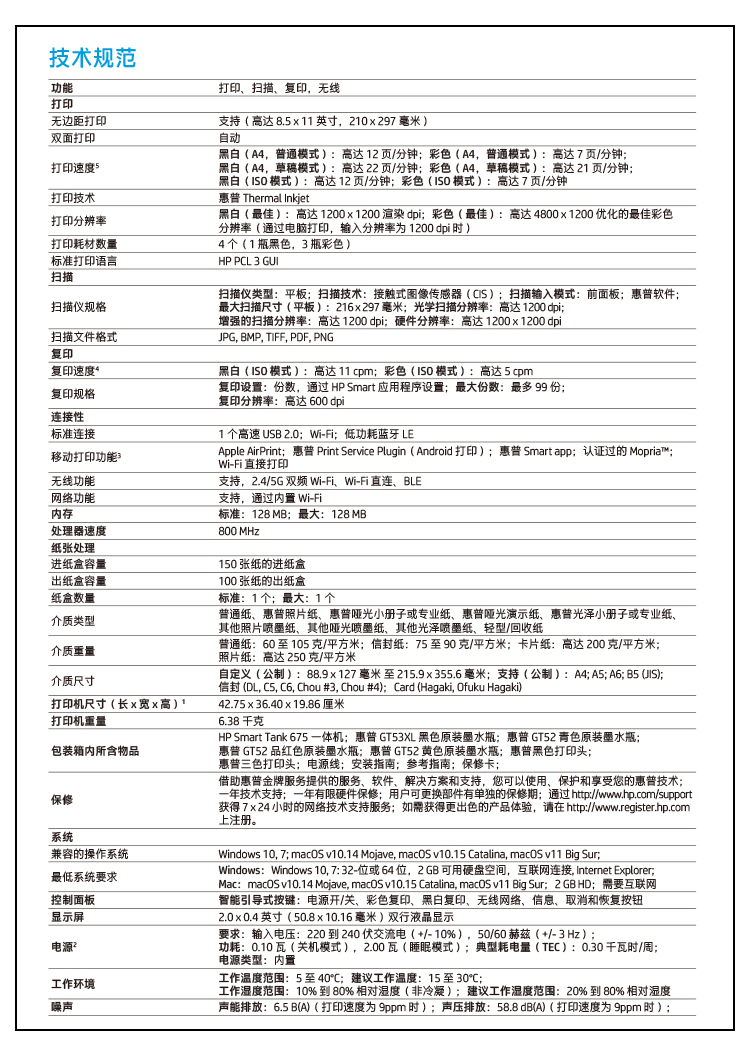 惠普(HP)Smart Tank 675 彩色喷墨连供无线打印一体机 自动双面打印/一年保修