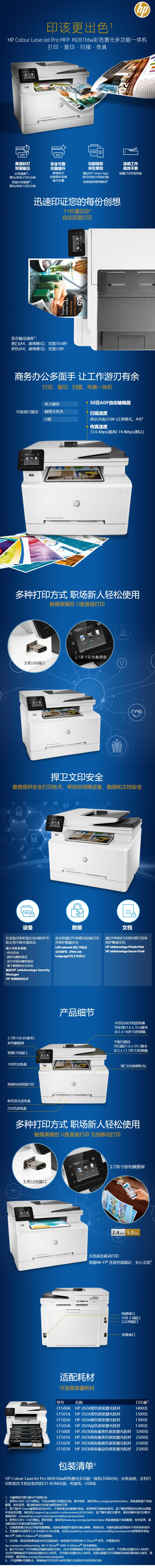 惠普 LaserJet Pro MFP M281fdw A4彩色激光打印机