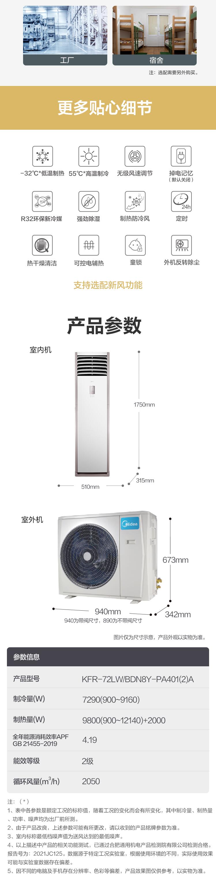 美的 KFR-72LW/BDN8Y-PA401(2)A 3匹清凉风变频冷暖柜机空调