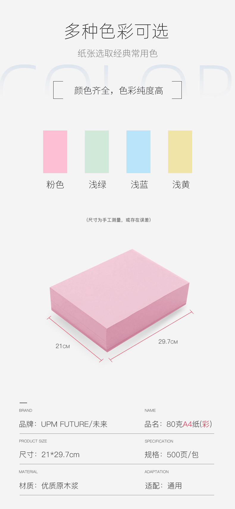 未来 A4 80G 彩色复印纸 500张/包(单位:包)