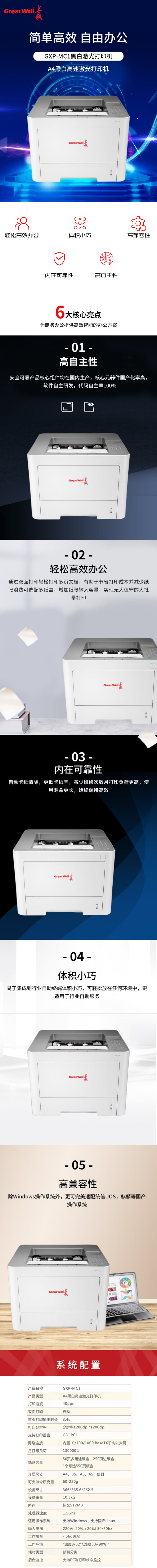长城(GreatWall)GXP-MC1 A4黑白激光打印机