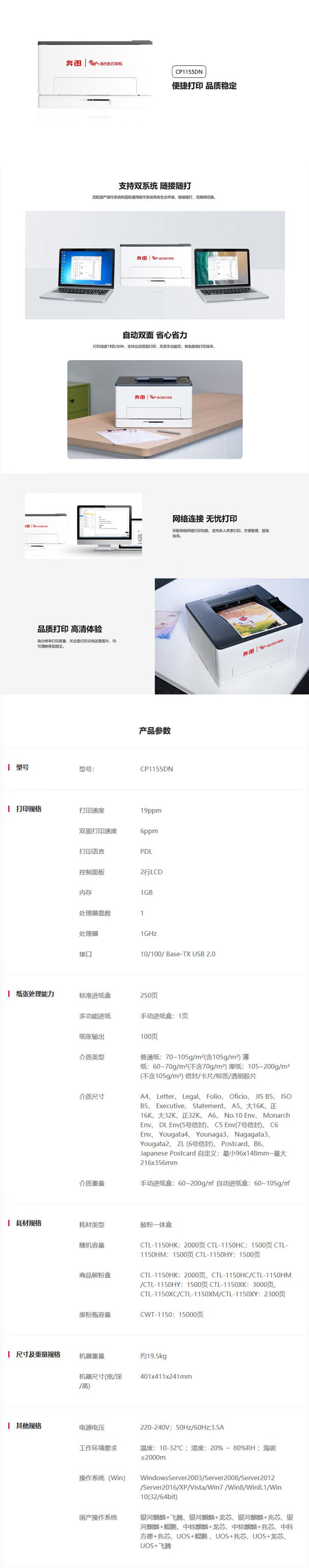 奔图(PANTUM)CP1155DN A4彩色激光单功能打印机