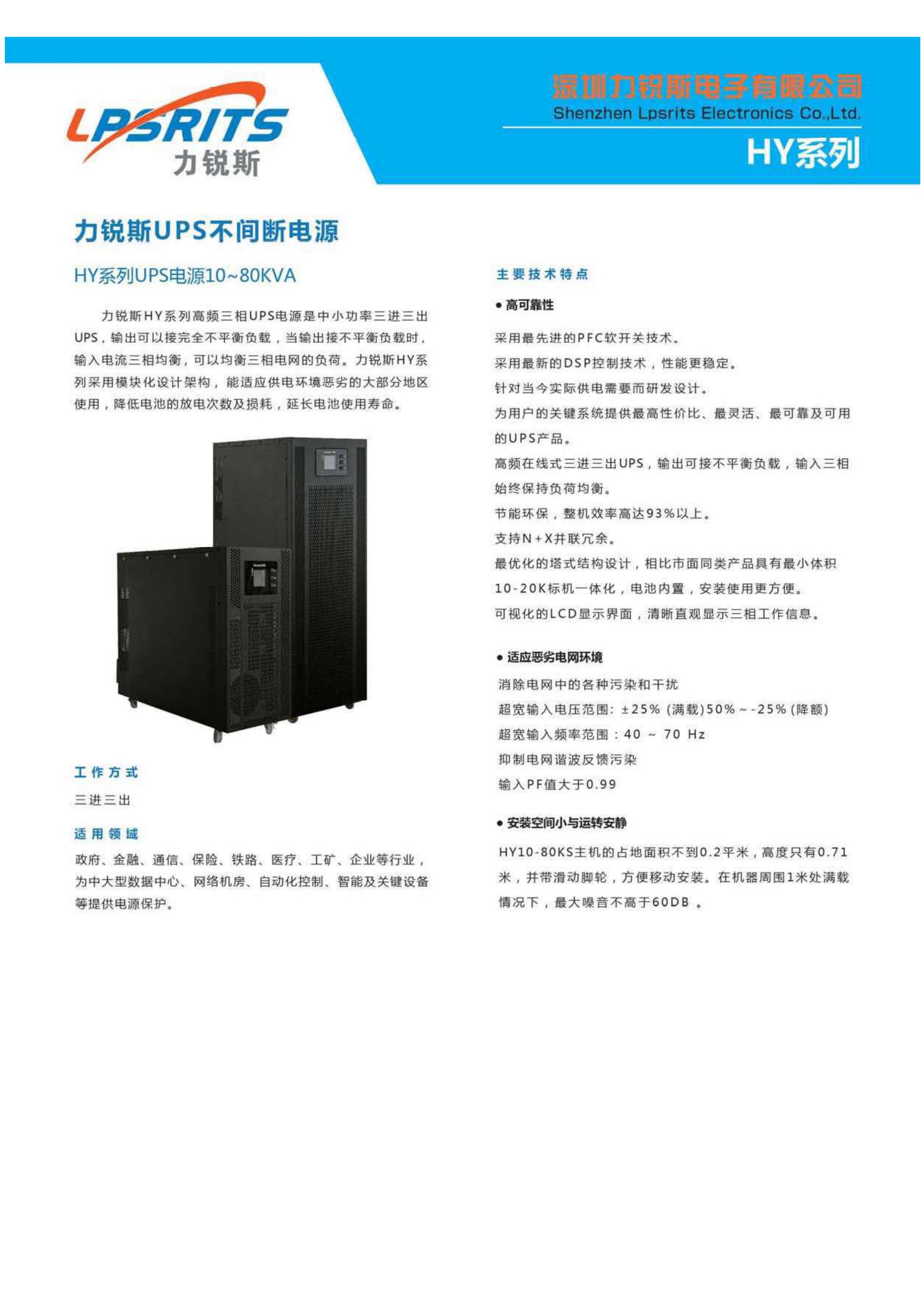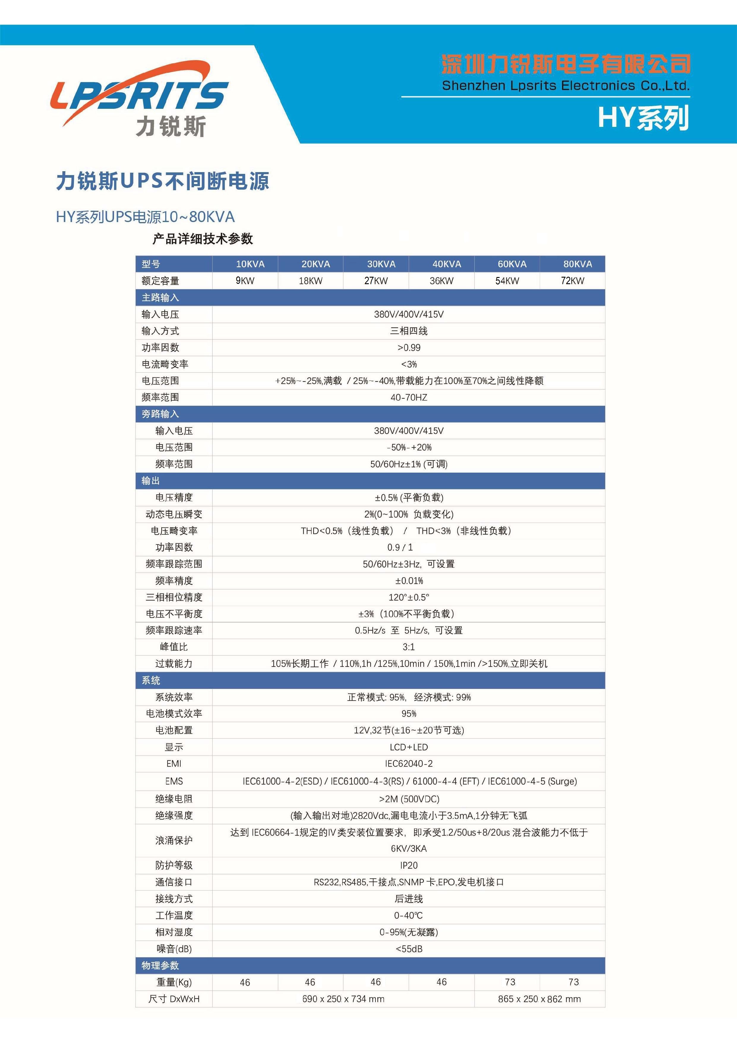 力锐斯 HY30KS UPS不间断电源(含32节12V100AH电池组/电池柜/安装施工/质保三年)