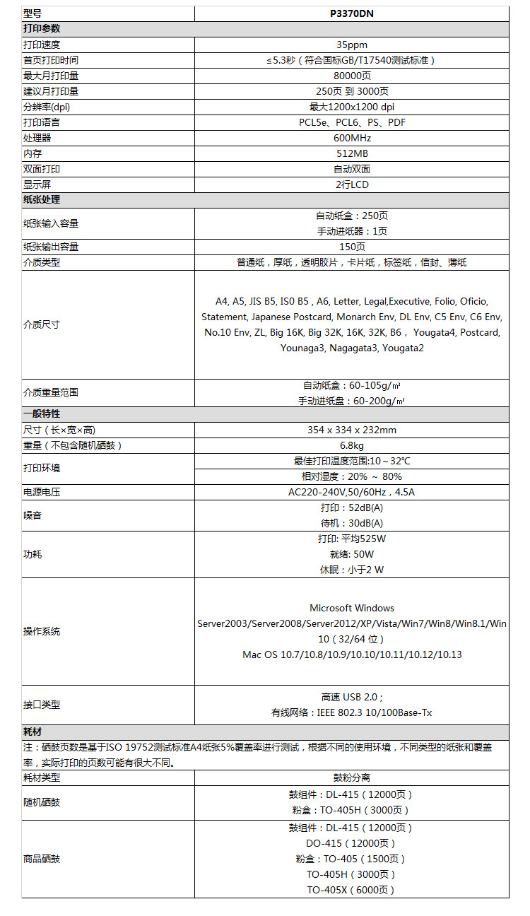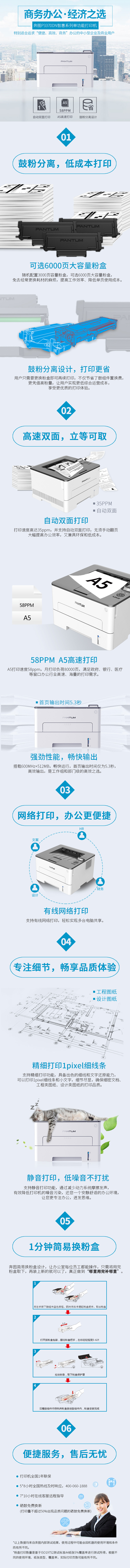 奔图(PANTUM) P3370DN黑白激光打印机(35页每分钟/双面打印/USB打印/网络打印)