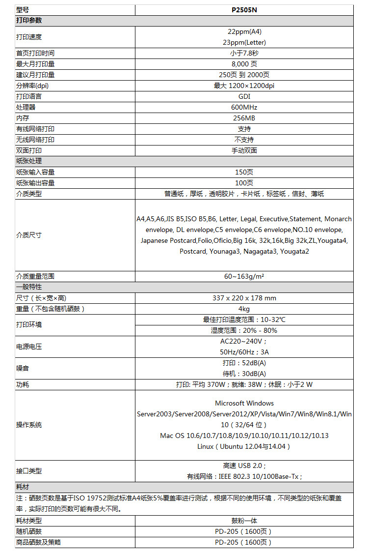 奔图(PANTUM) P2505N黑白激光打印机(22页每分钟/USB打印/网络打印)