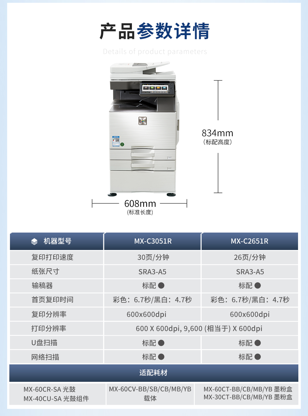 夏普(SHARP) MX-C3051R彩色复合机+双纸盒+工作底台