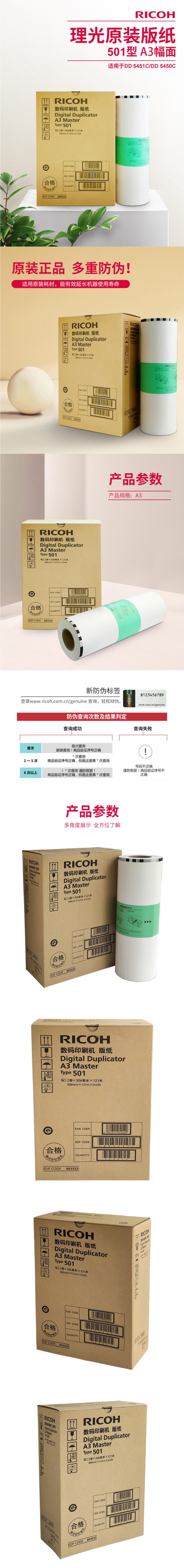 理光(Ricoh)501型 A3版纸(121m/卷*1卷)适用于DD 5451C/5450C